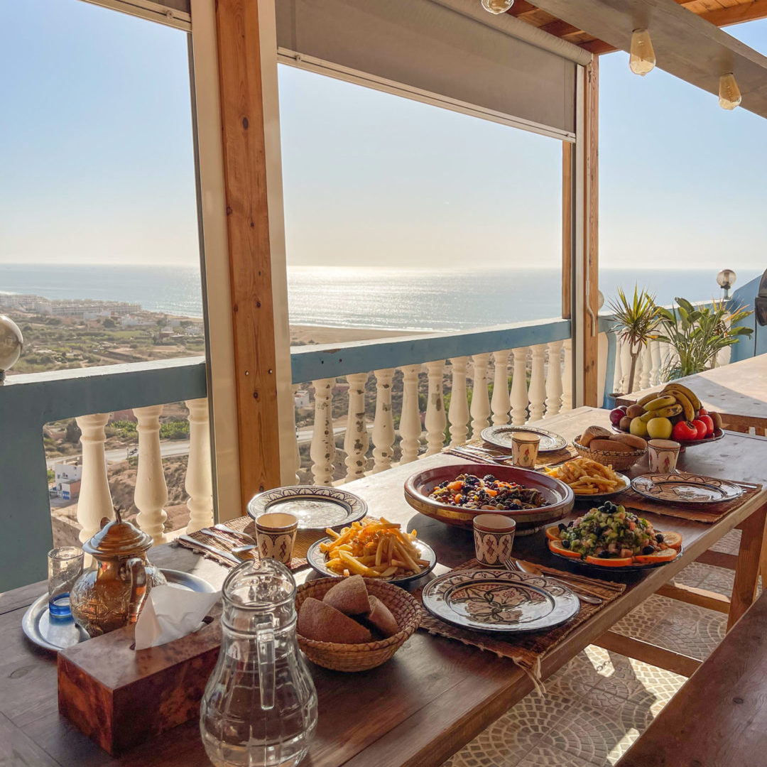 Full board: healthy Moroccan food prepared by our in-house chef (7x breakfast, 6x packed lunches for the beach days with fruit and cereals, 7x dinners)